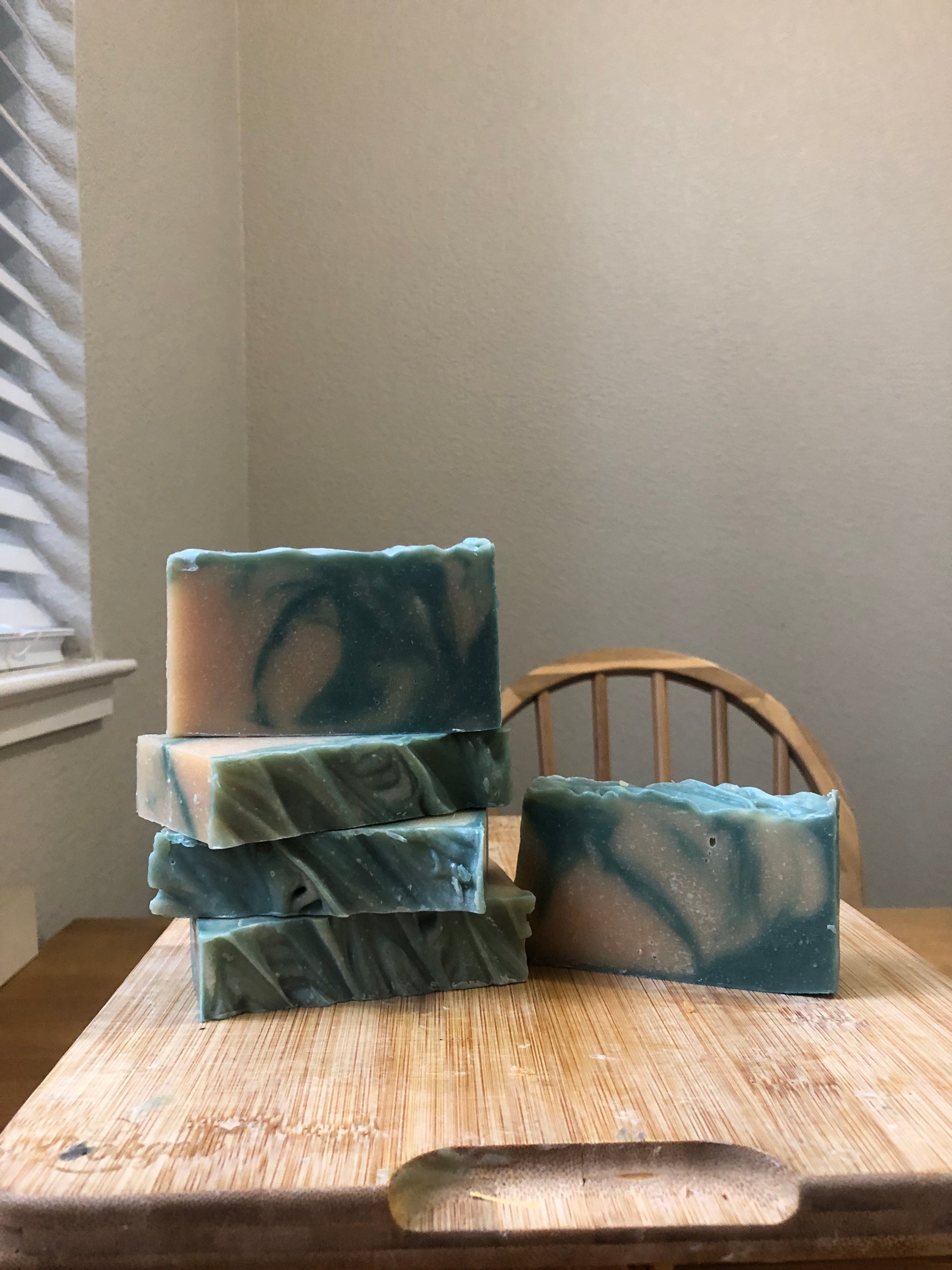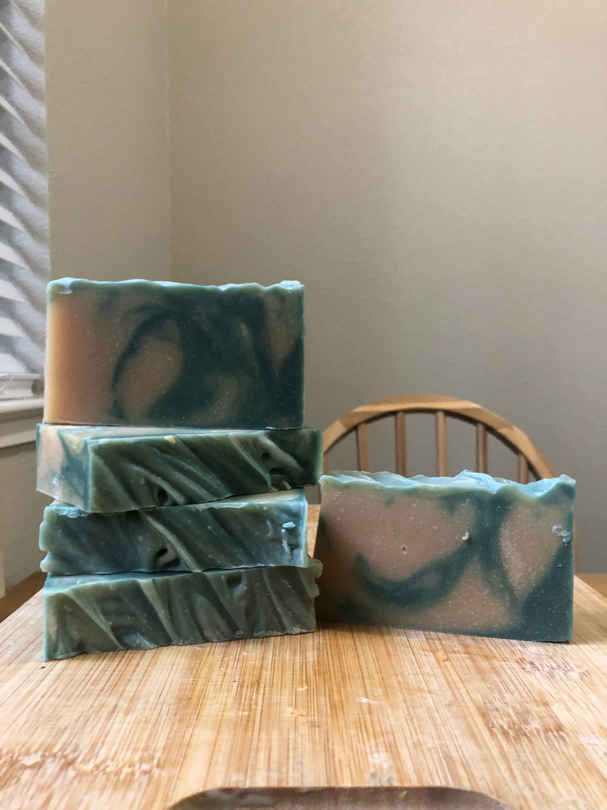 Ingredients: Olive oil, Organic Coconut oil, Goats milk, Grass-fed beef tallow, Sodium Hydroxide*, unrefined Shea butter, Pine essential oil, Organic Castor oil, Forest green mica.