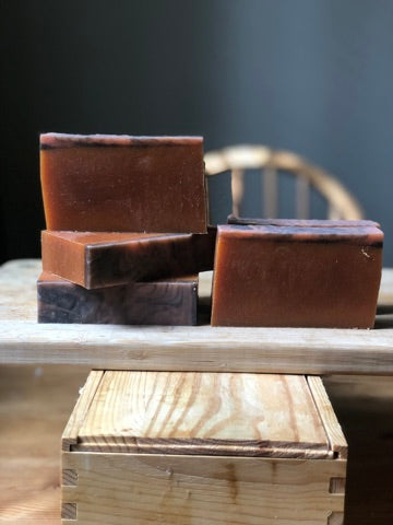 Ingredients: Olive oil, Organic coconut oil, Goats milk, Grass-fed beef tallow, *Sodium Hydroxide, Unrefined shea butter, Orange essential oil, Organic castor oil, Cinnamon essential oil, Clove essential oil, Mica.